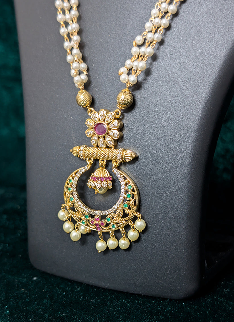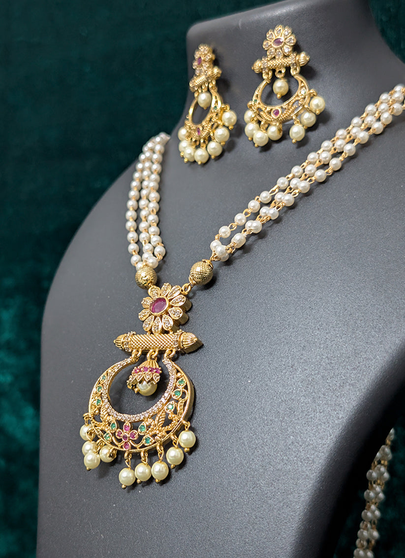 TDO2536133 String Pearl and Stone Studded Necklace Set
