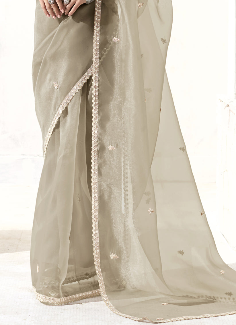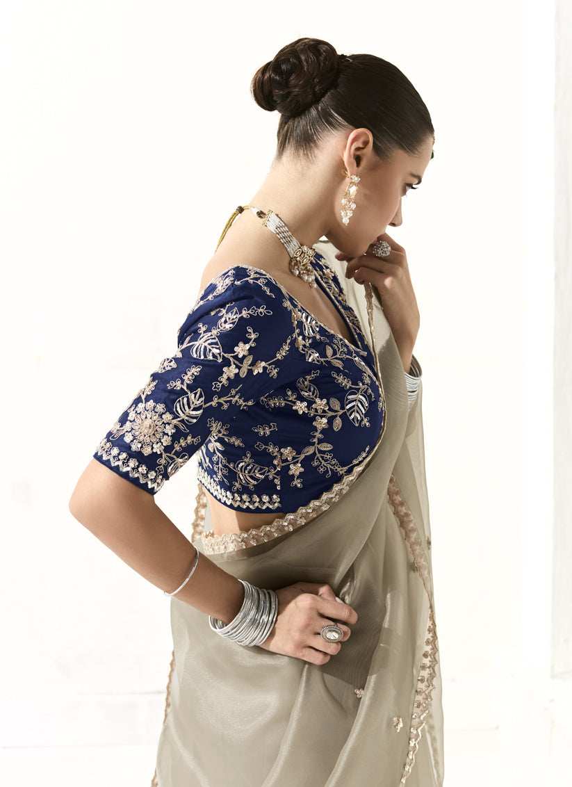 Ash Grey Tissue Embroidered Designer Wedding Saree