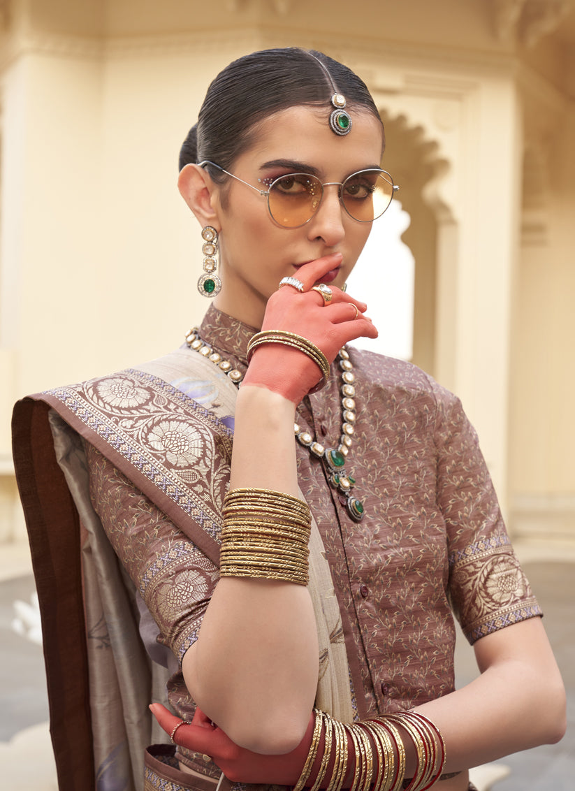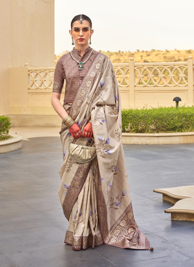 TDO186205-1Beige Silk Floral Printed Saree for Festival
