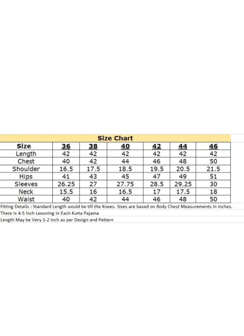 Men's Wears - Kurta, Sherwani, Jodhpuri etc(Size Chart)
