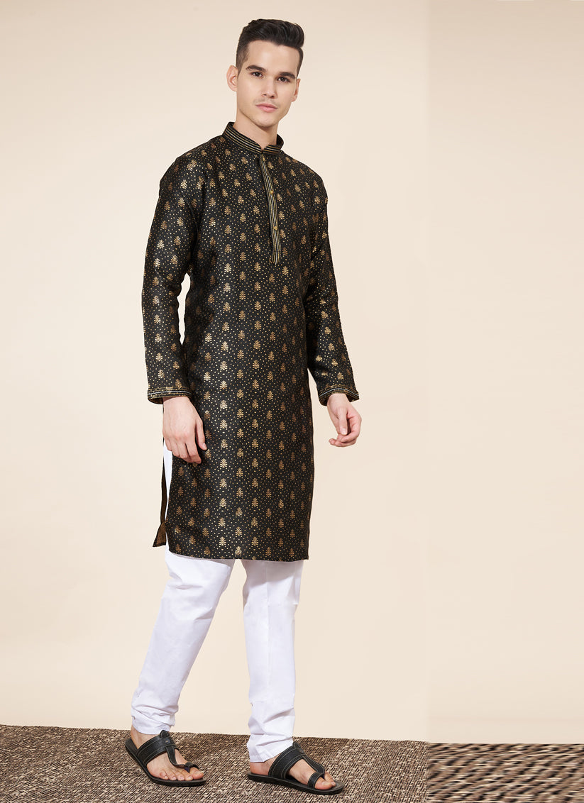 Black Jacquard Mens Kurta Pajama Set