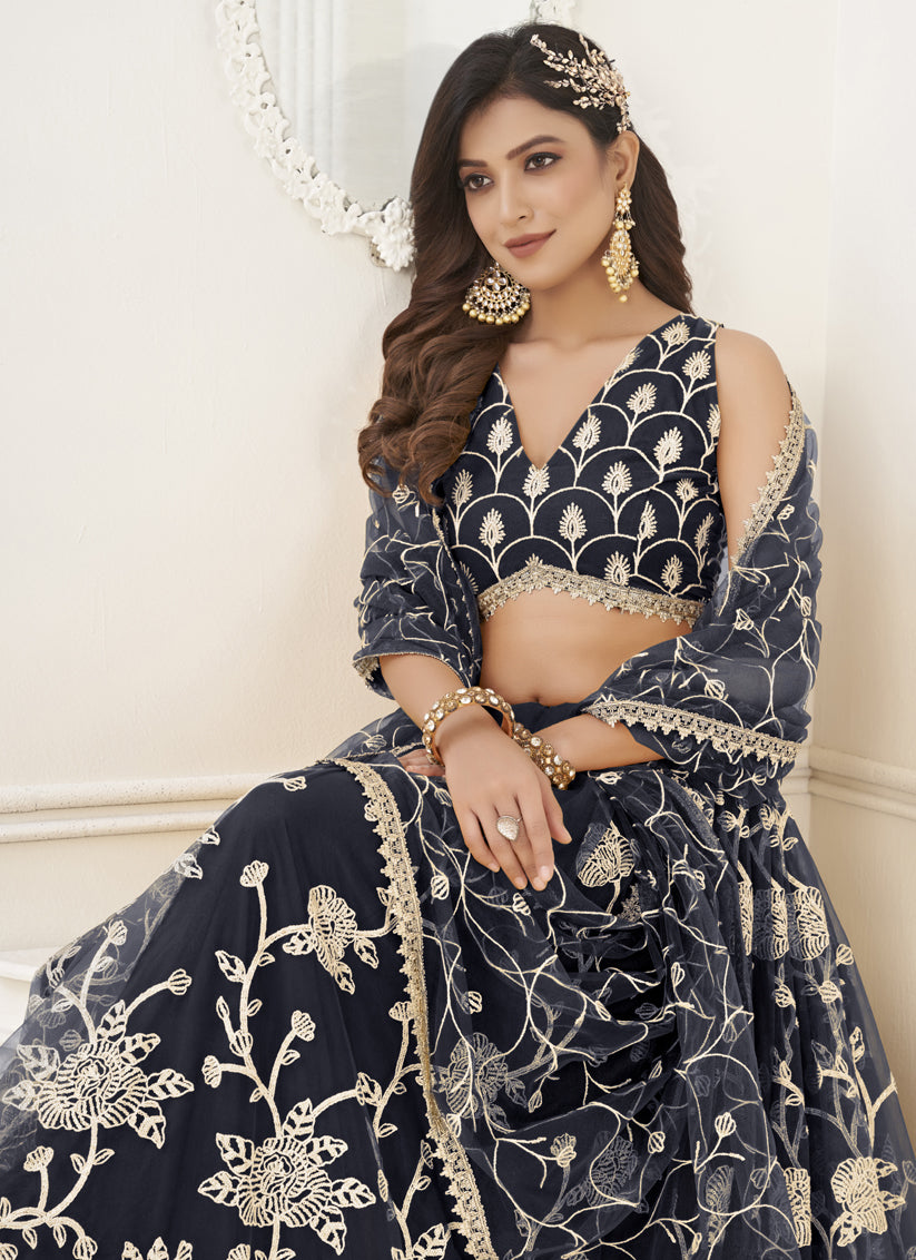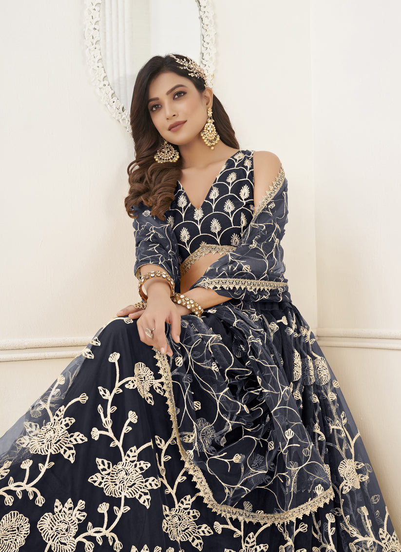 Fabric: Choli (Blouse) - Butterfly Net, Lehenga - Butterfly Net, Inner - American Crepe, Dupatta - Net