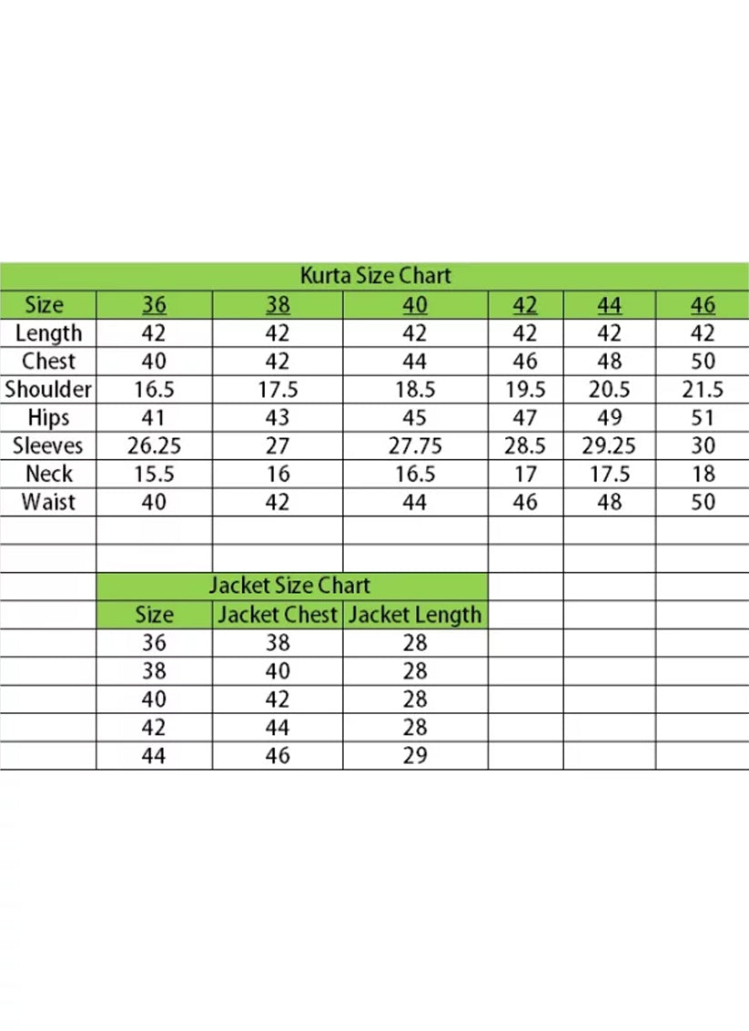 Men's Wears - Kurta, Sherwani, Jodhpuri etc(Size Chart)