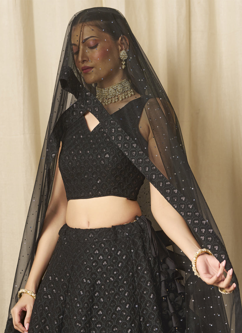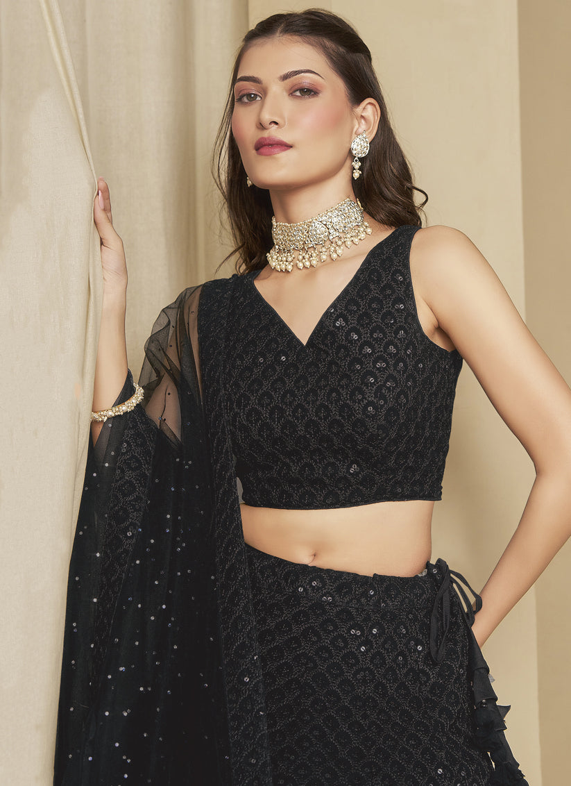 Black Sequins Georgette Embroidered Lehenga Choli