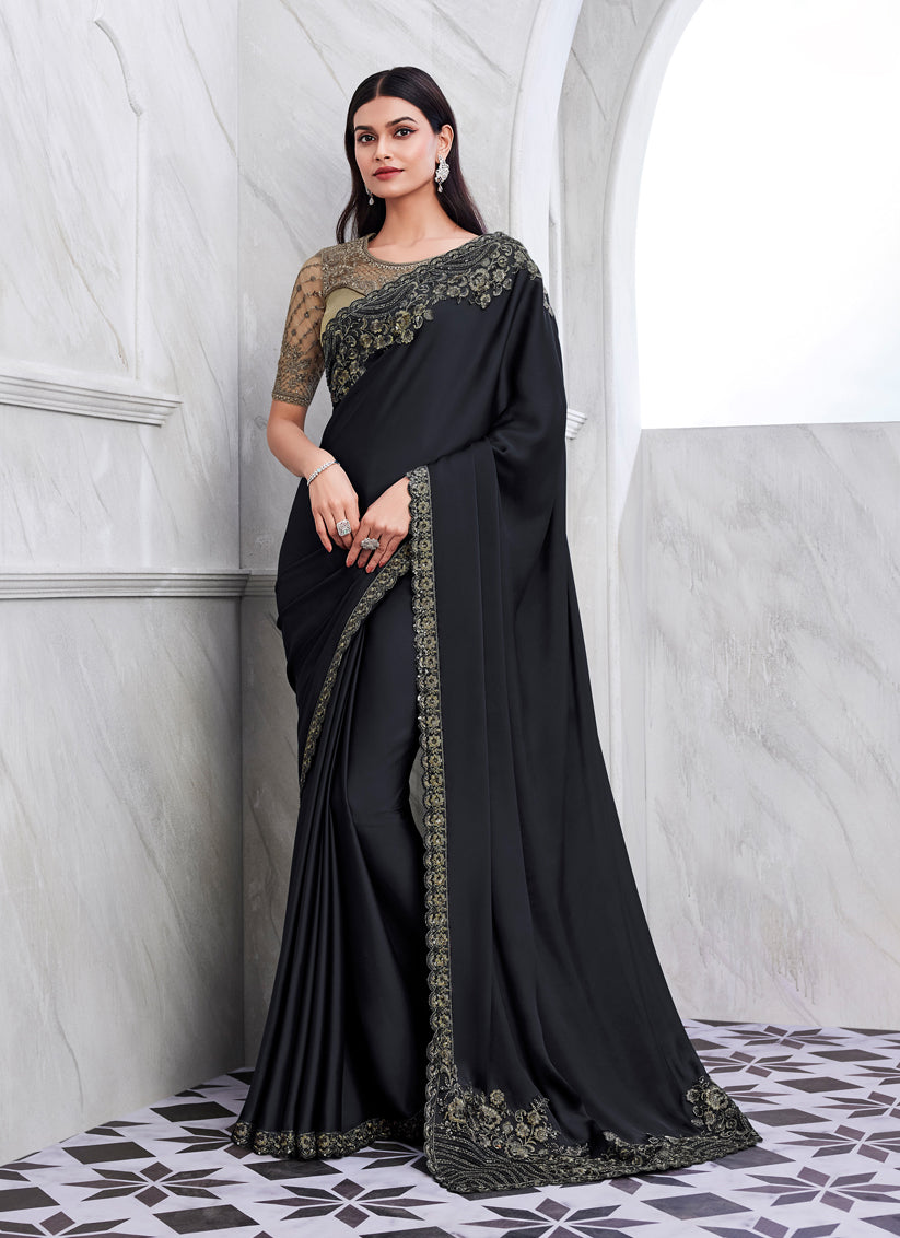 TDO221201-1Black Silk Designer Saree with Embroidered Blouse