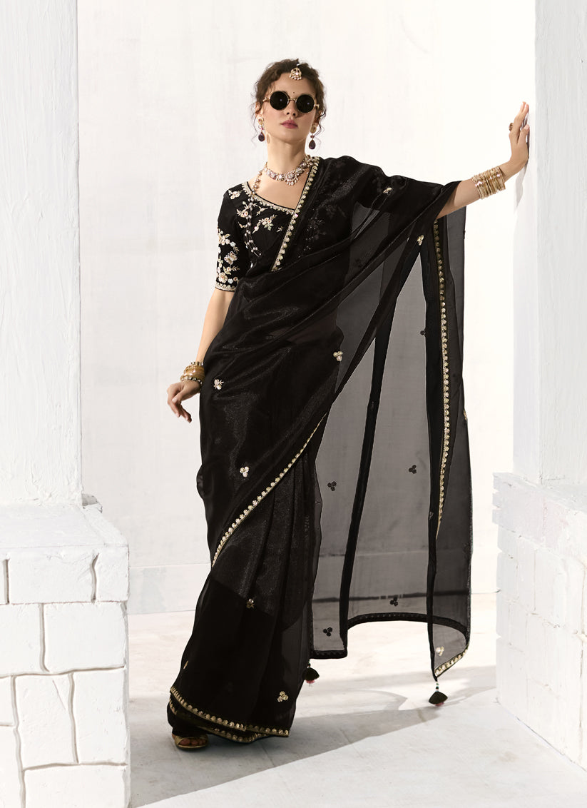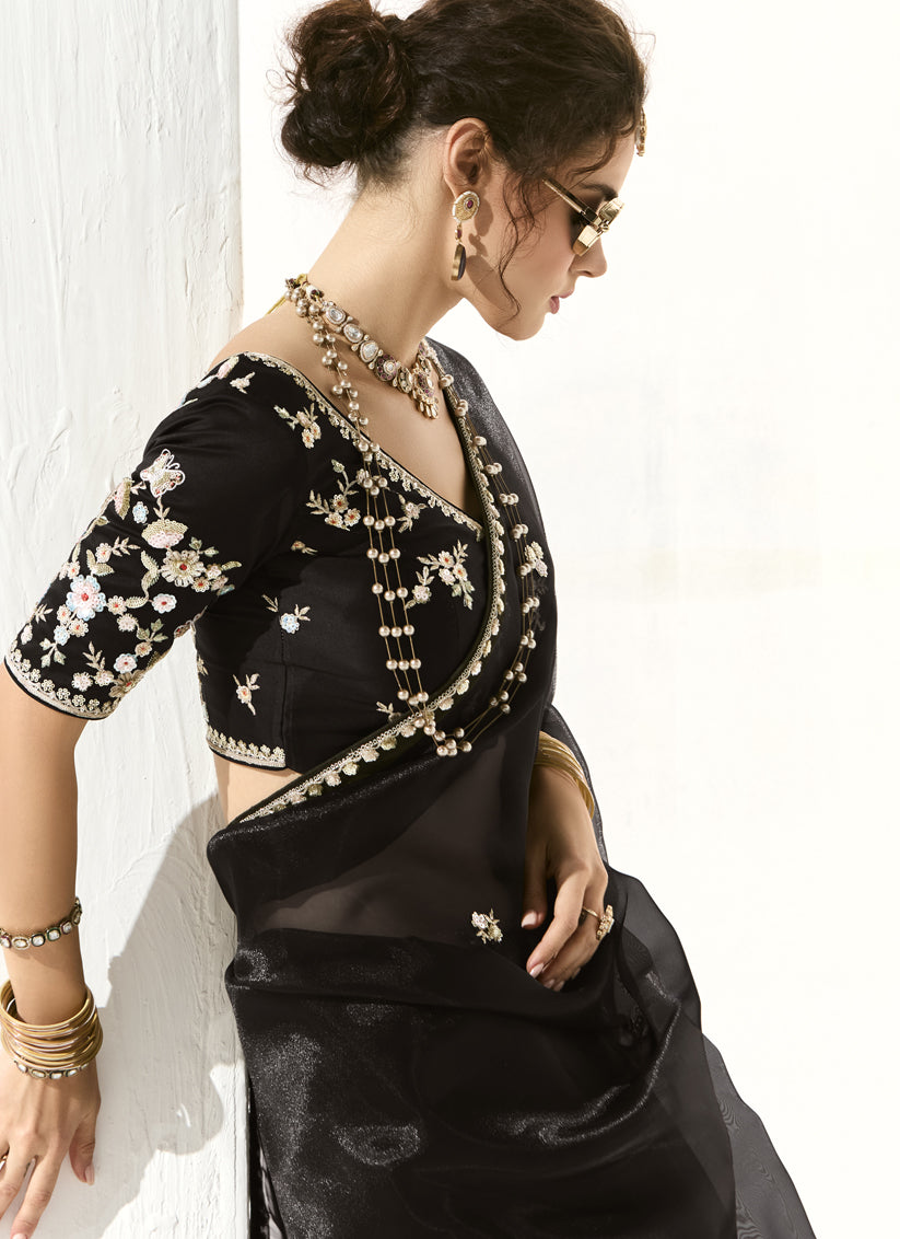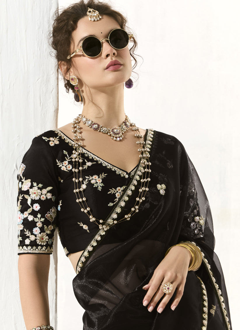 TDO261400-1Black Tissue Embroidered Designer Wedding Saree