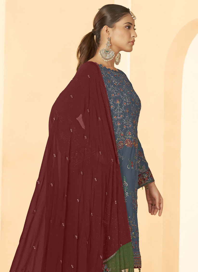 TDO228004-1Blue Georgette Embroidered Salwar Kameez Suit