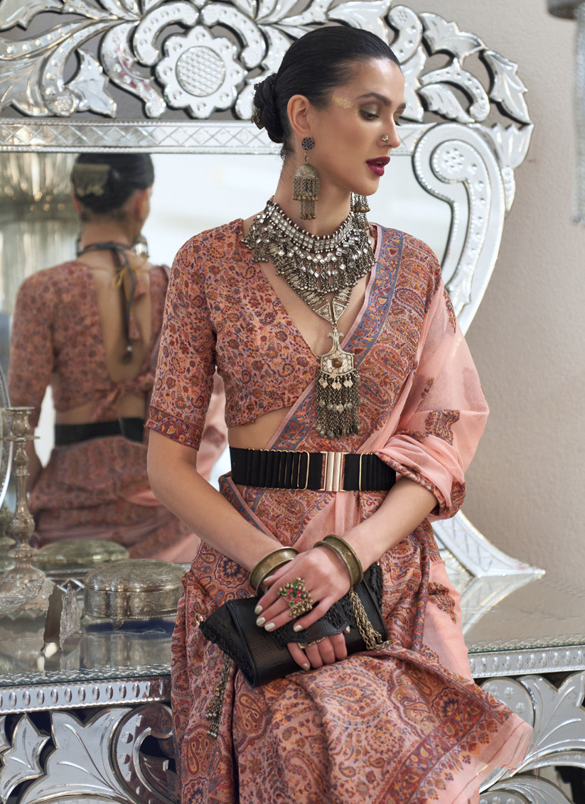Blush Peach Silk Kashmiri Handloom Weaving Saree