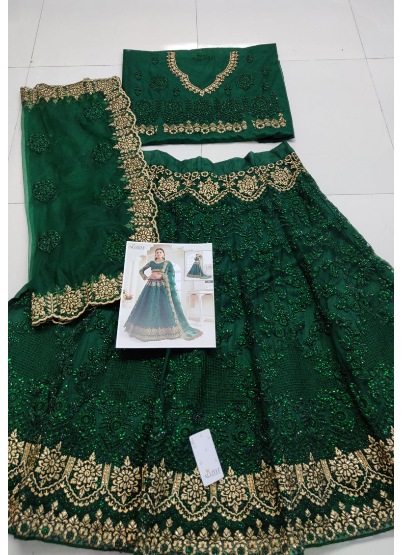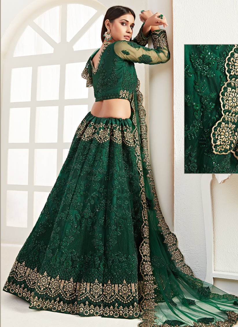 Bottle Green Net Embroidered Bridal Lehenga Choli