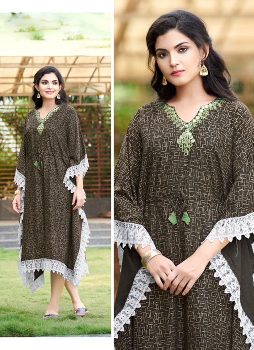 TDO70504-ReadyBrown Heavy Rayon Kaftan Style Readymade Kurti