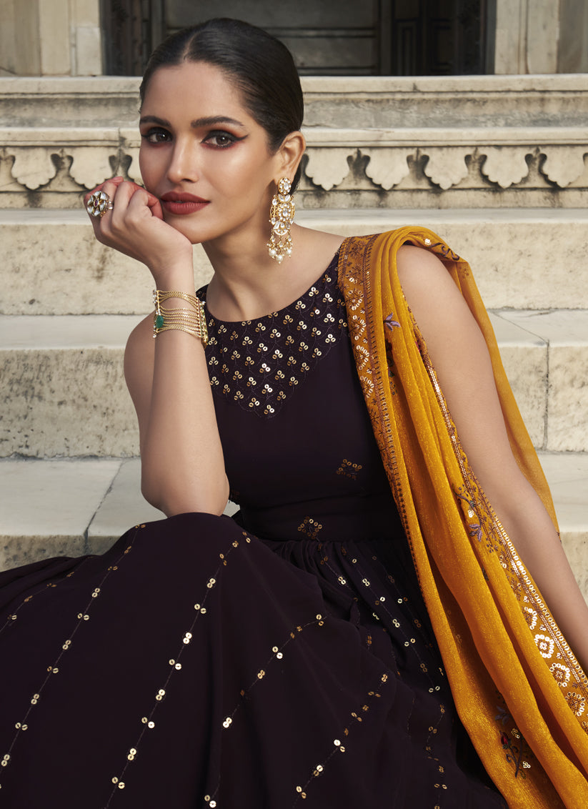 Burgundy Georgette Embroidered Anarkali Gown with Dupatta