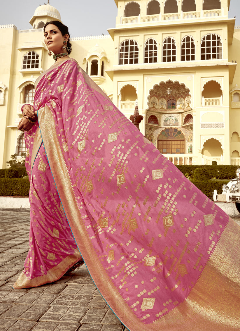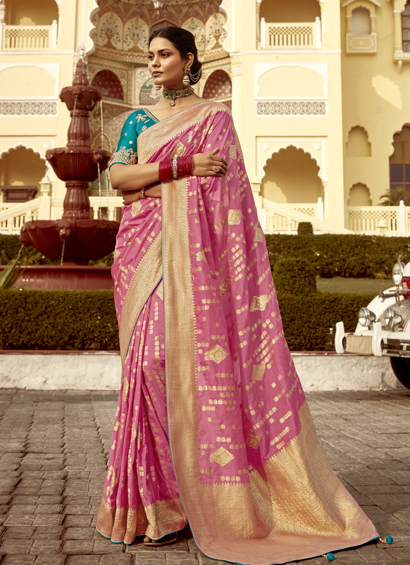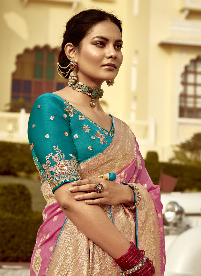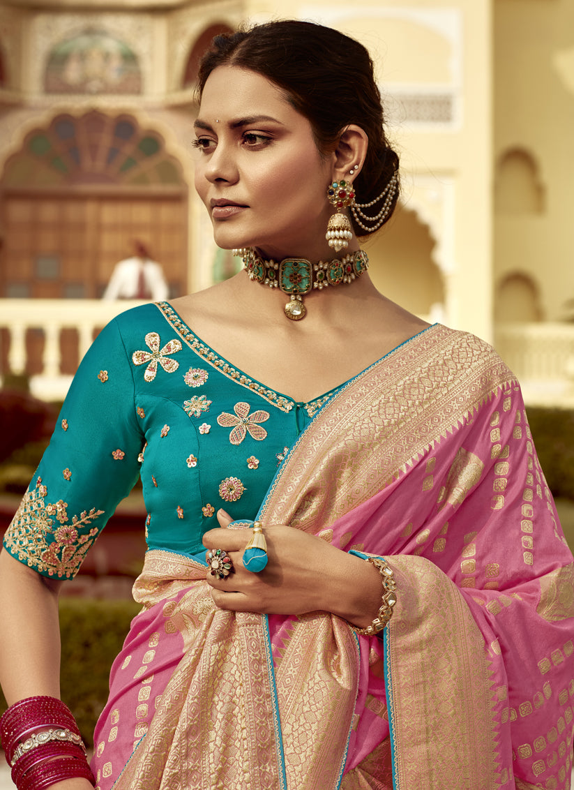 Cherry Pink Dola Silk Wedding Saree with Embroidered Blouse