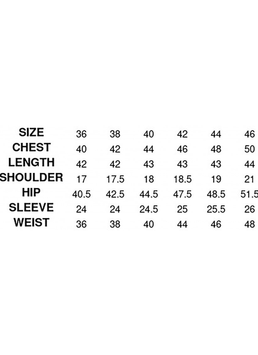 Please choose your precise chest measurement when placing an order, in inches. For instance, if your chest measures 38 inches, kindly select size 38 (M) to make your purchase. The actual garment will have an additional 3-5 inches of room (varies depending on the material) to accommodate your body's movements. |
