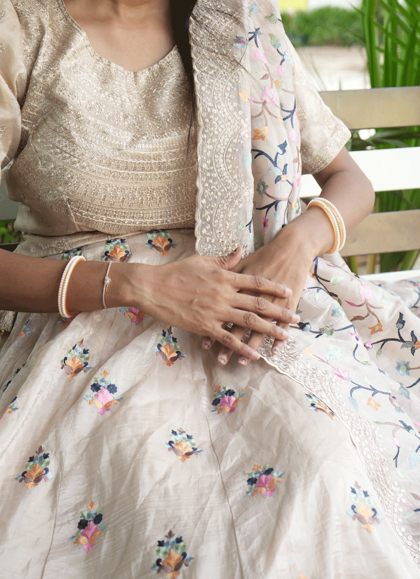 Cream Tissue Heavy Embroidered Designer Lehenga Choli
