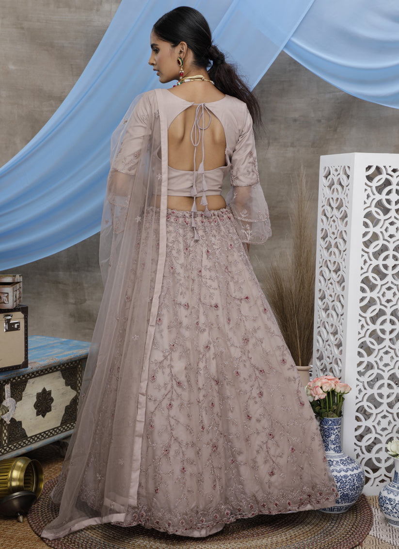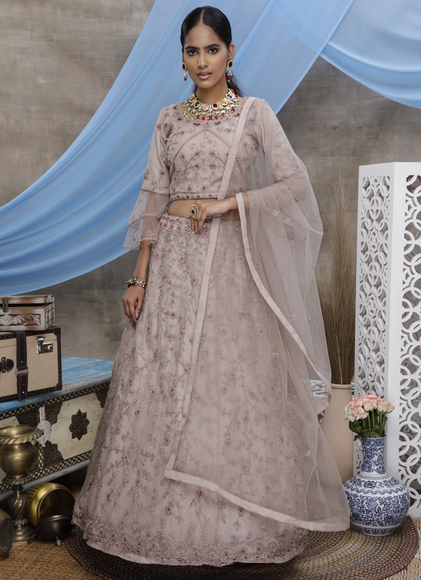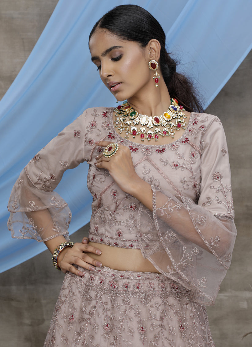 Dusty Lavender Net Embroidered Designer Lehenga Choli