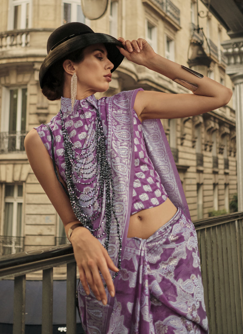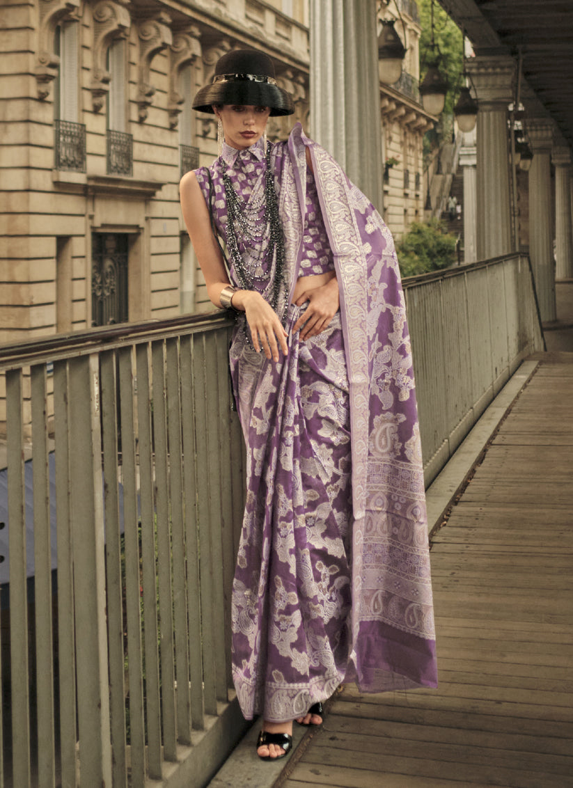Dusty Magenta Organza Lucknowi Handloom Weaving Saree