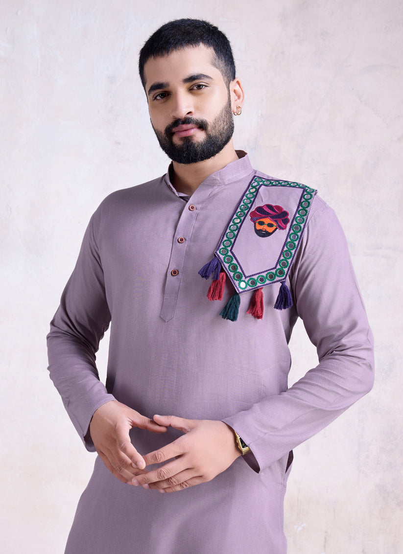 Dusty Purple Rayon Gamthi Work Navratri Special Kurta