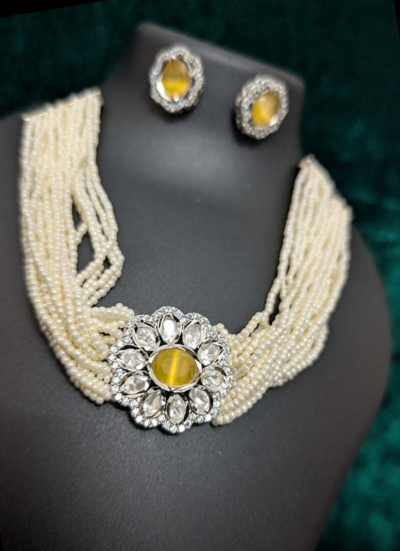 Elegant Yellow Kundan & Pearl Choker Necklace Set
