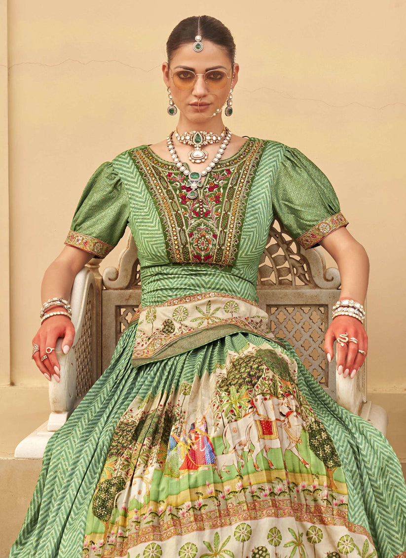 Forest Green Viscose Silk Designer Lehenga Choli Set