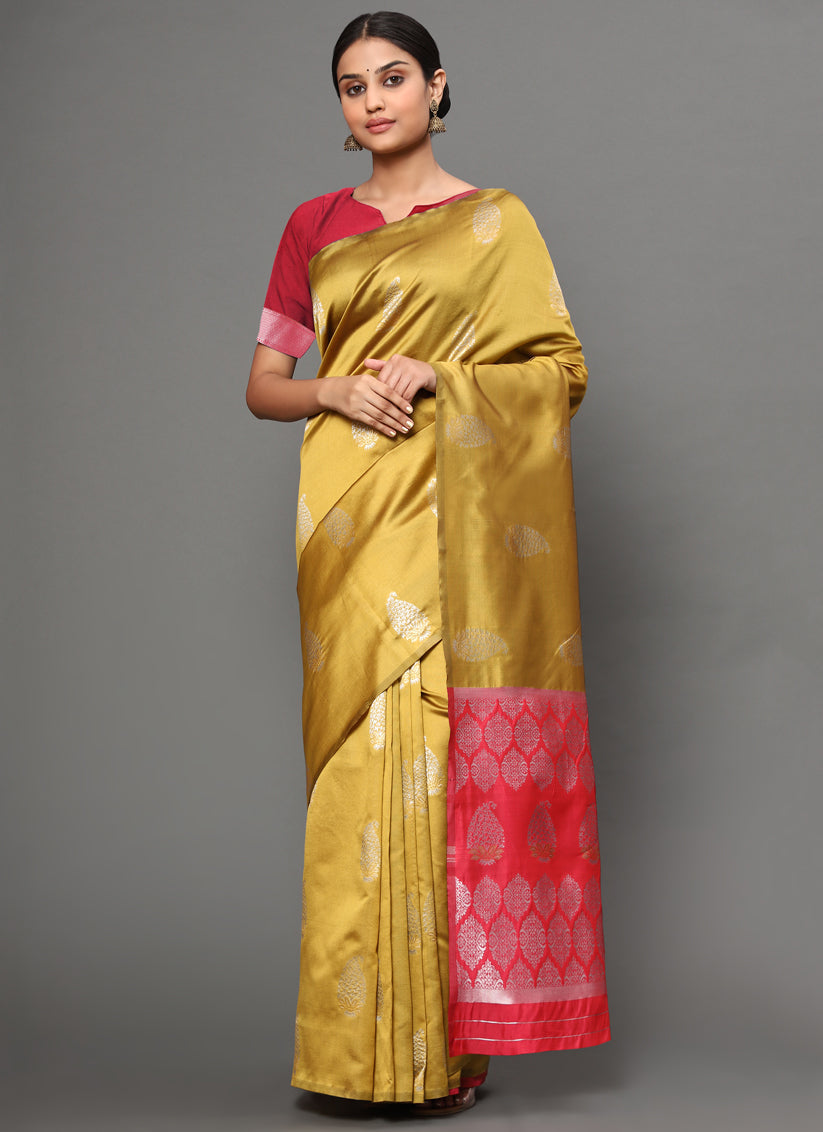 Golden Banarasi Silk Zari Weaving Saree