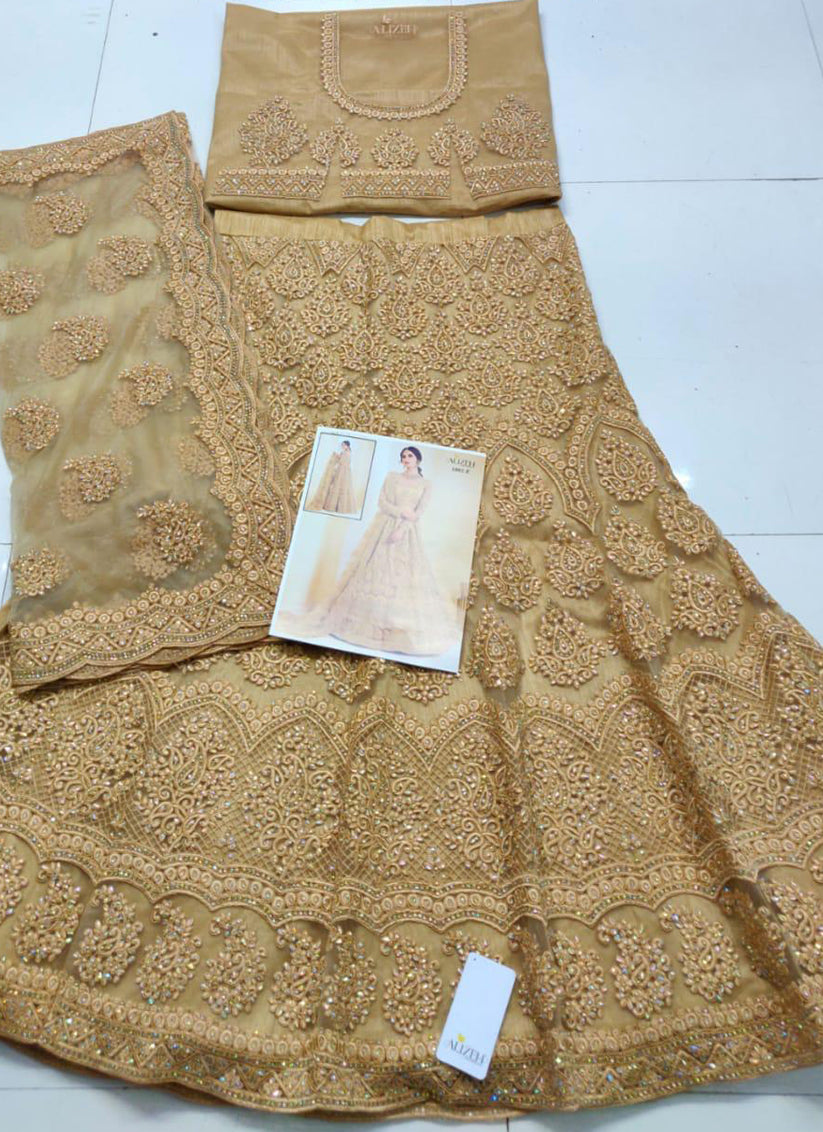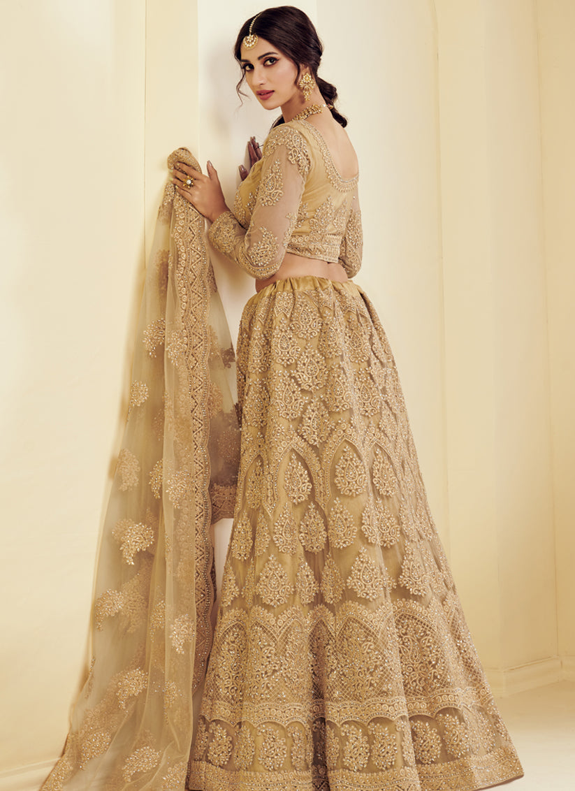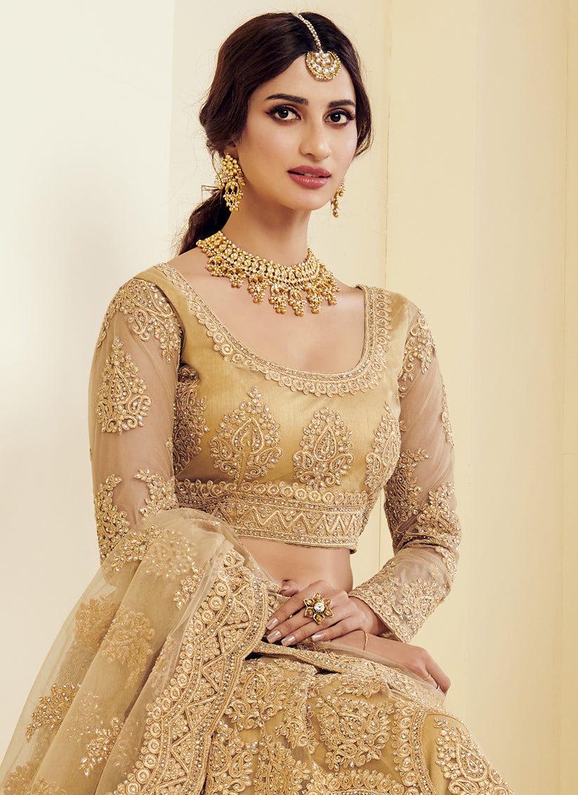 Golden Net Embroidered Bridal Lehenga Choli