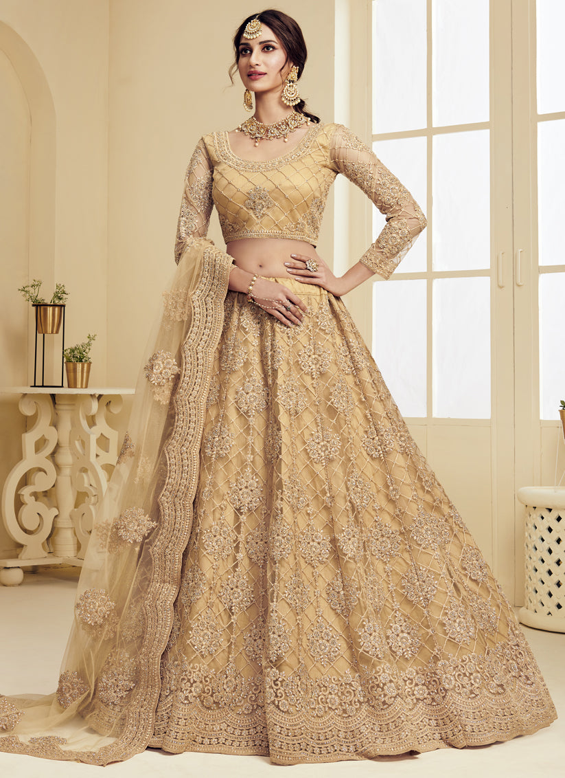 Fabric: Choli (Blouse) - Net with Silk Satin inner, Lehenga - Net with Silk Satin inner and Can Can, Dupatta - Net