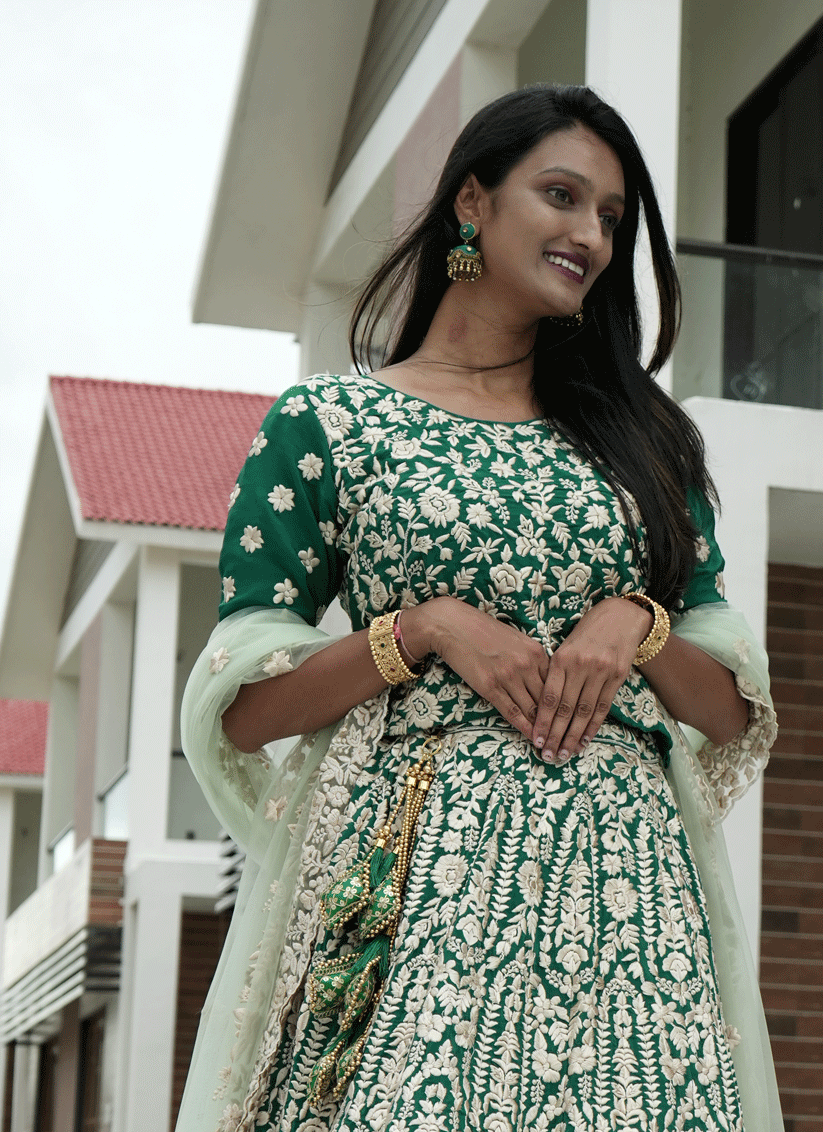 Green Georgette Heavy Embroidered Designer Lehenga Choli