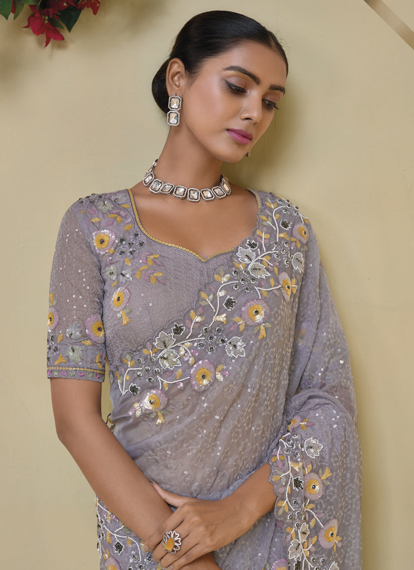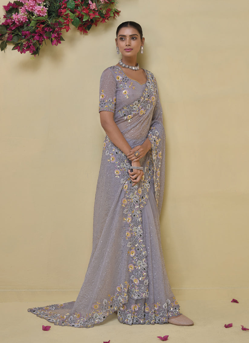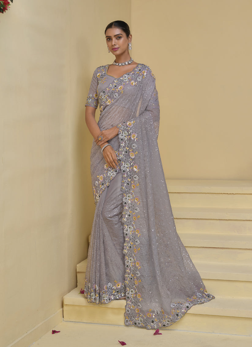 Grey Pure Banarasi Tuscany Designer Wedding Saree
