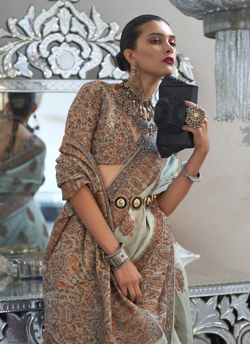 Ice Blue Silk Kashmiri Handloom Weaving Saree