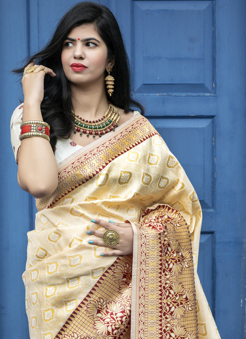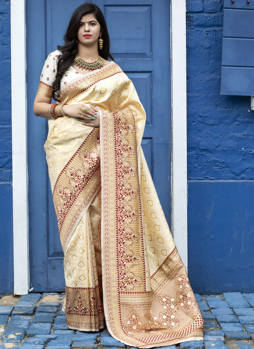 Ivory Banarasi Silk Weaving Saree