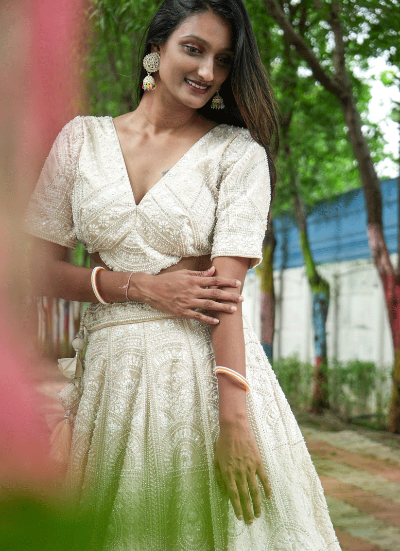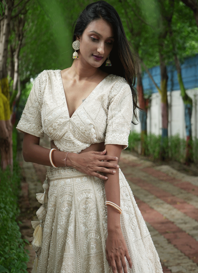Ivory Silk Heavy Hand Beads Designer Lehenga Choli
