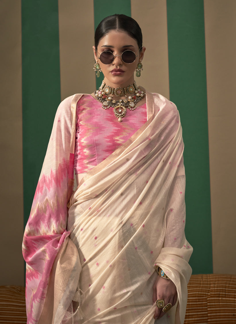 Ivory Spun Handloom Silk Weaving Festival Saree
