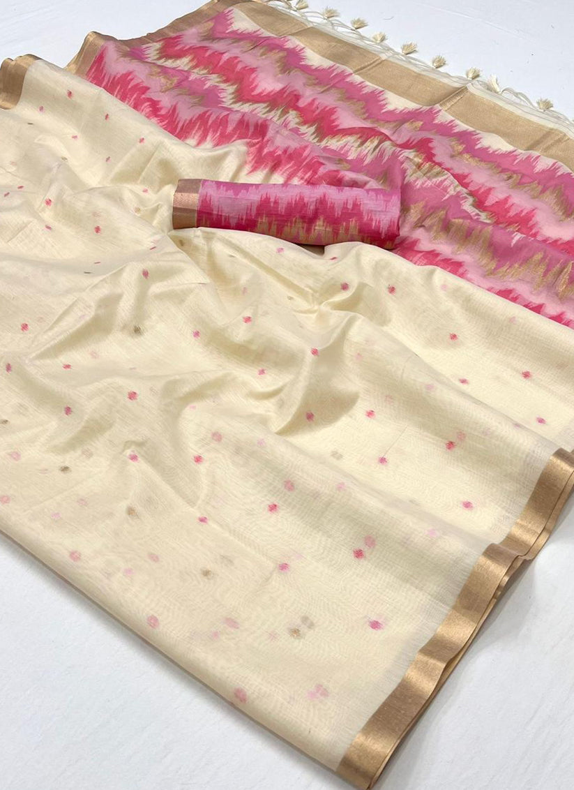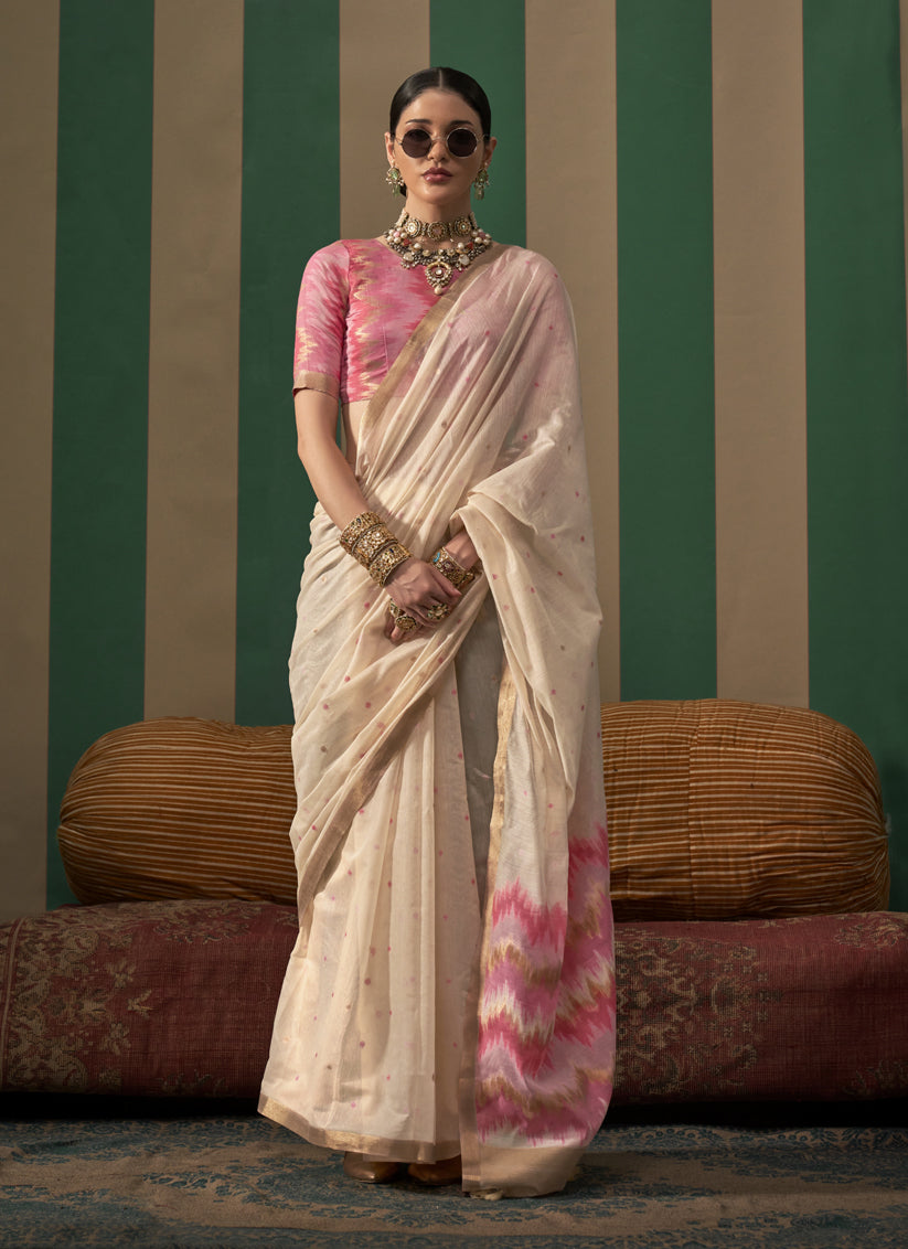 TDO246304-1Ivory Spun Handloom Silk Weaving Festival Saree