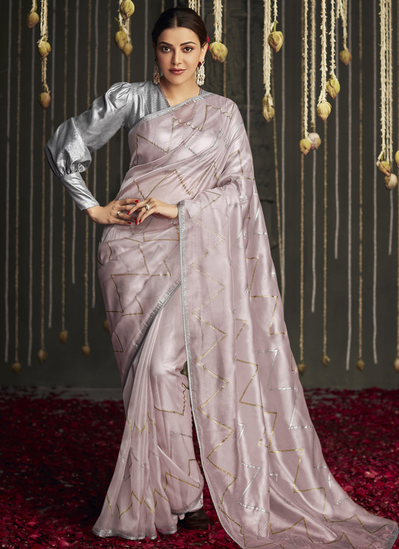 Kajal Aggarwal Blush Pink Embroidered Designer Saree
