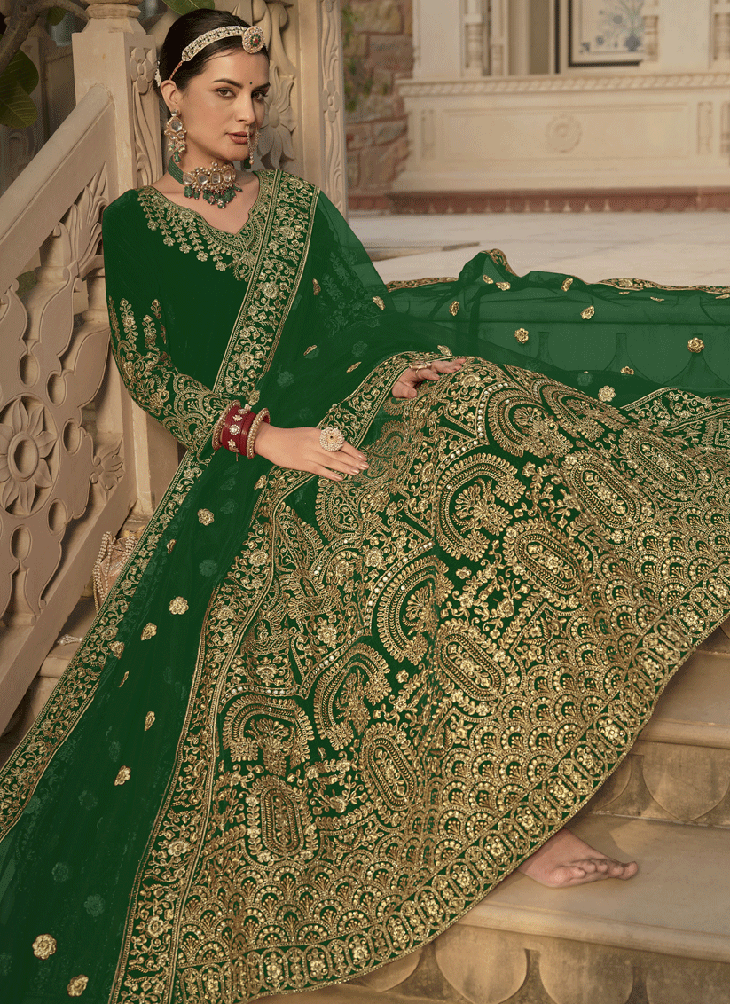 Kelly Green Velvet Heavy Embroidered Anarkali Suit