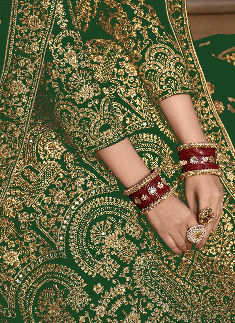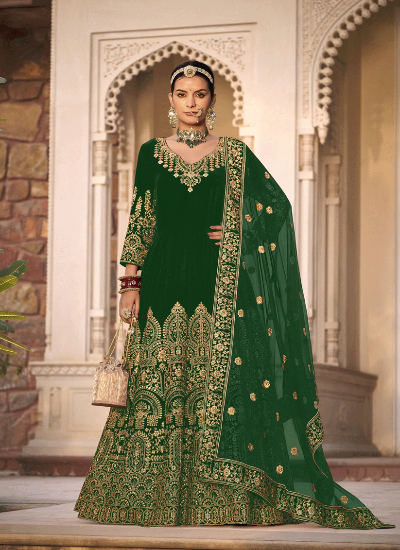 TDO258902-1Kelly Green Velvet Heavy Embroidered Anarkali Suit