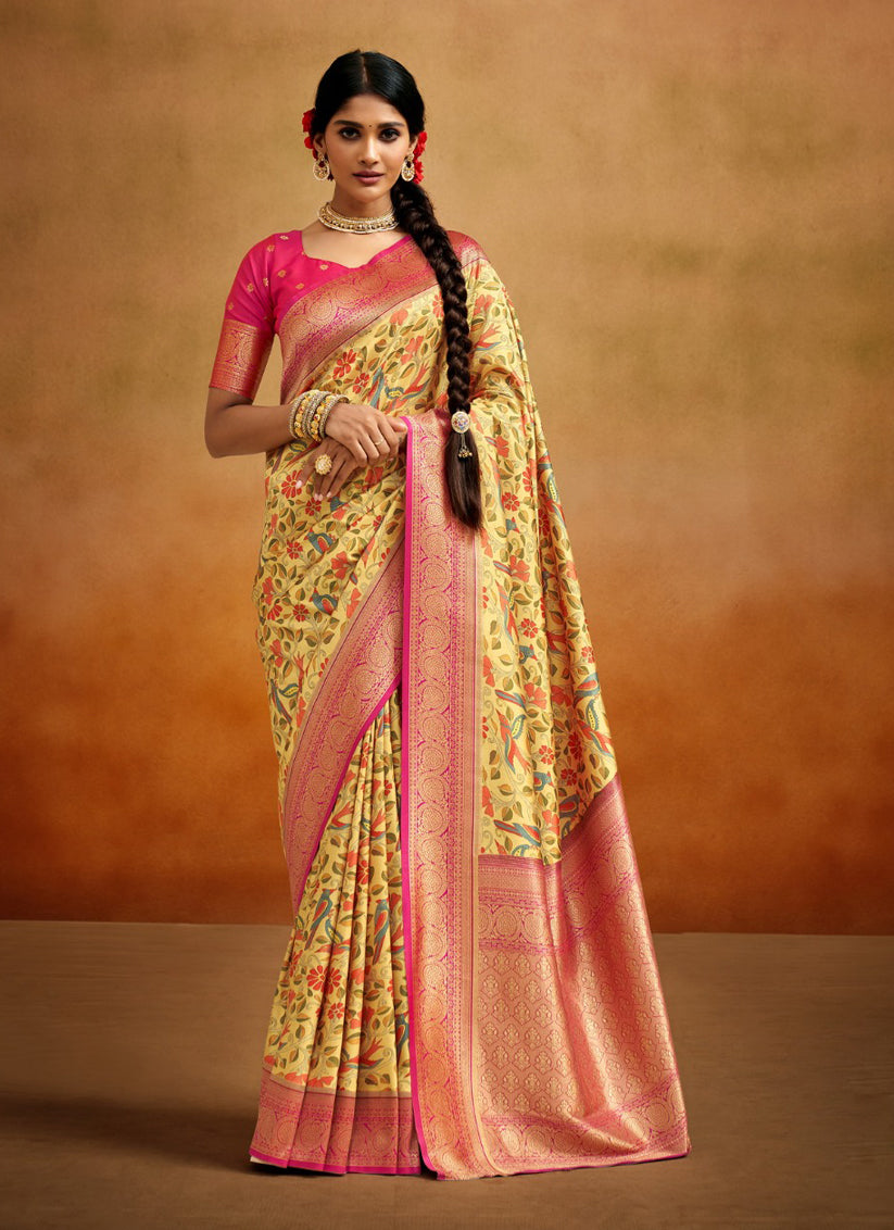 Lemon Yellow Banarasi Silk Woven Festival Saree