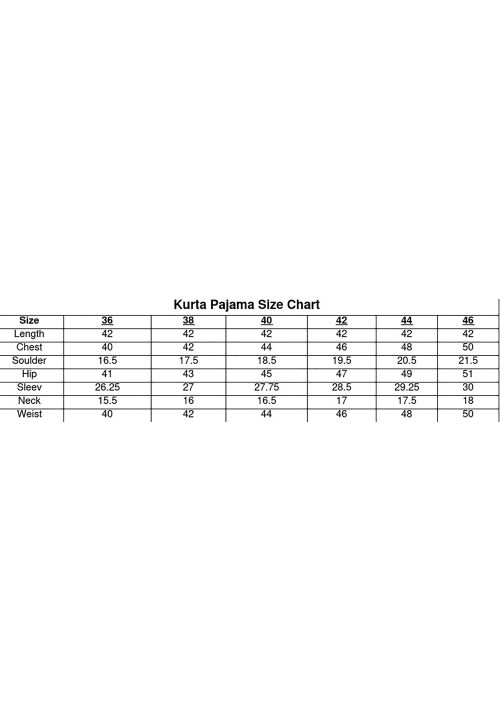 Men's Wears - Kurta, Sherwani, Jodhpuri etc(Size Chart)