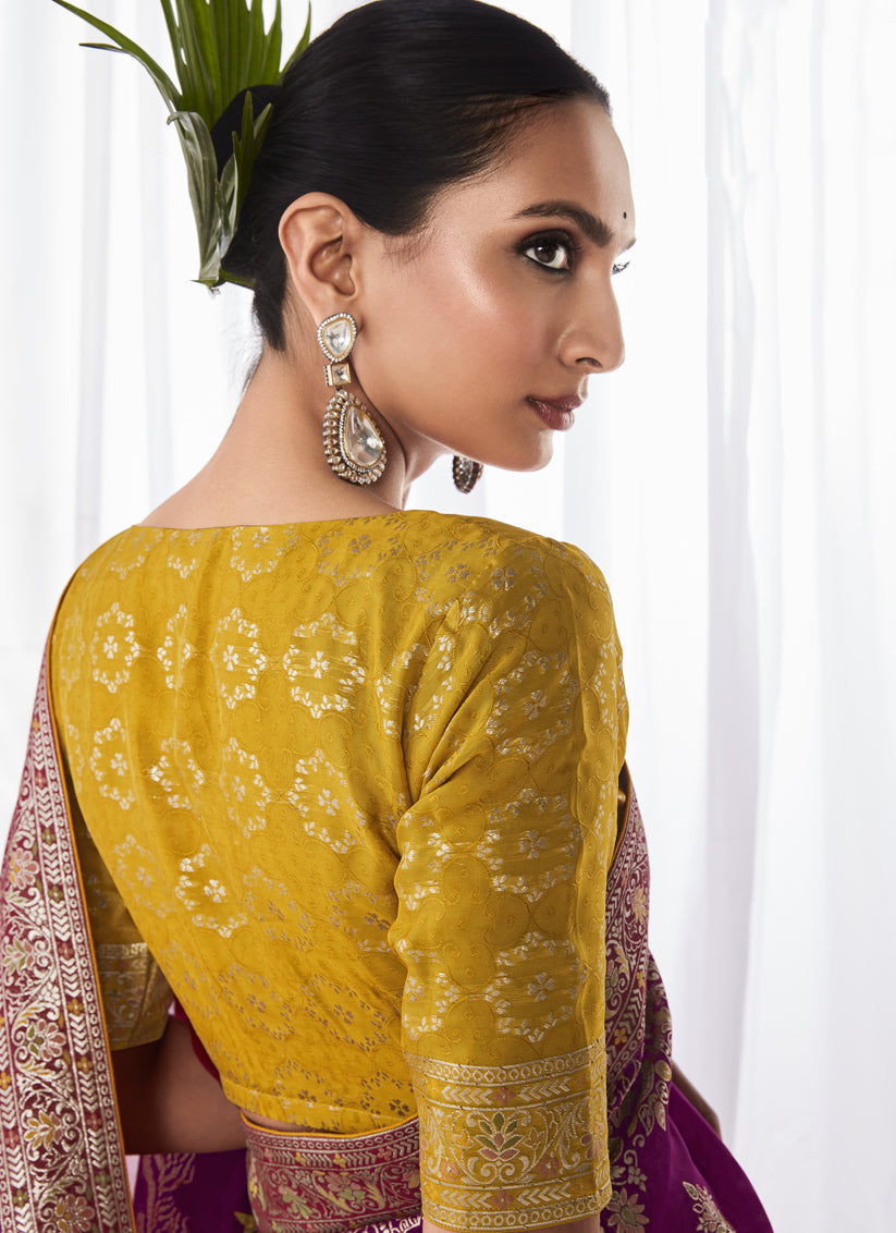 Magenta Kora Silk Meenakari Pallu Saree
