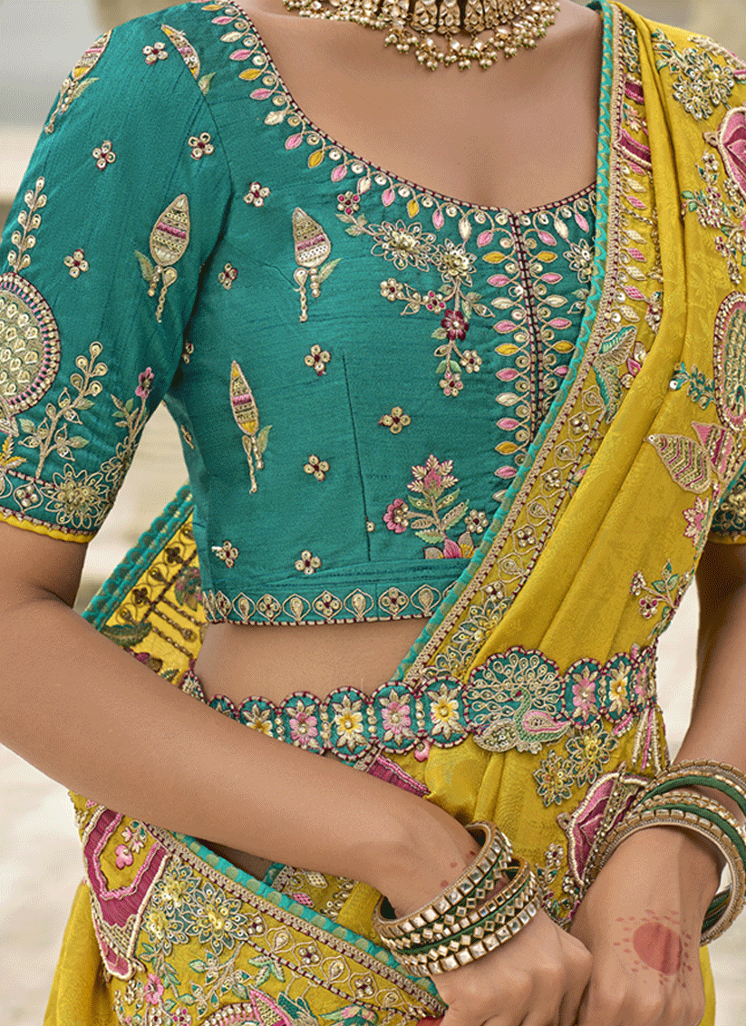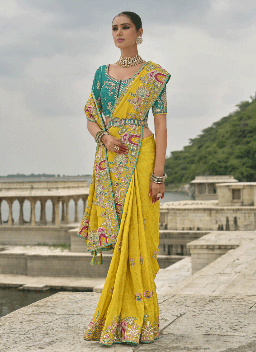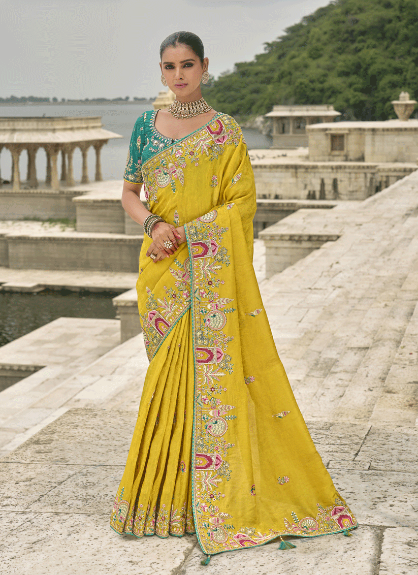 TDO260102-1Maize Yellow Pure Viscose Handwork Jacquard Saree