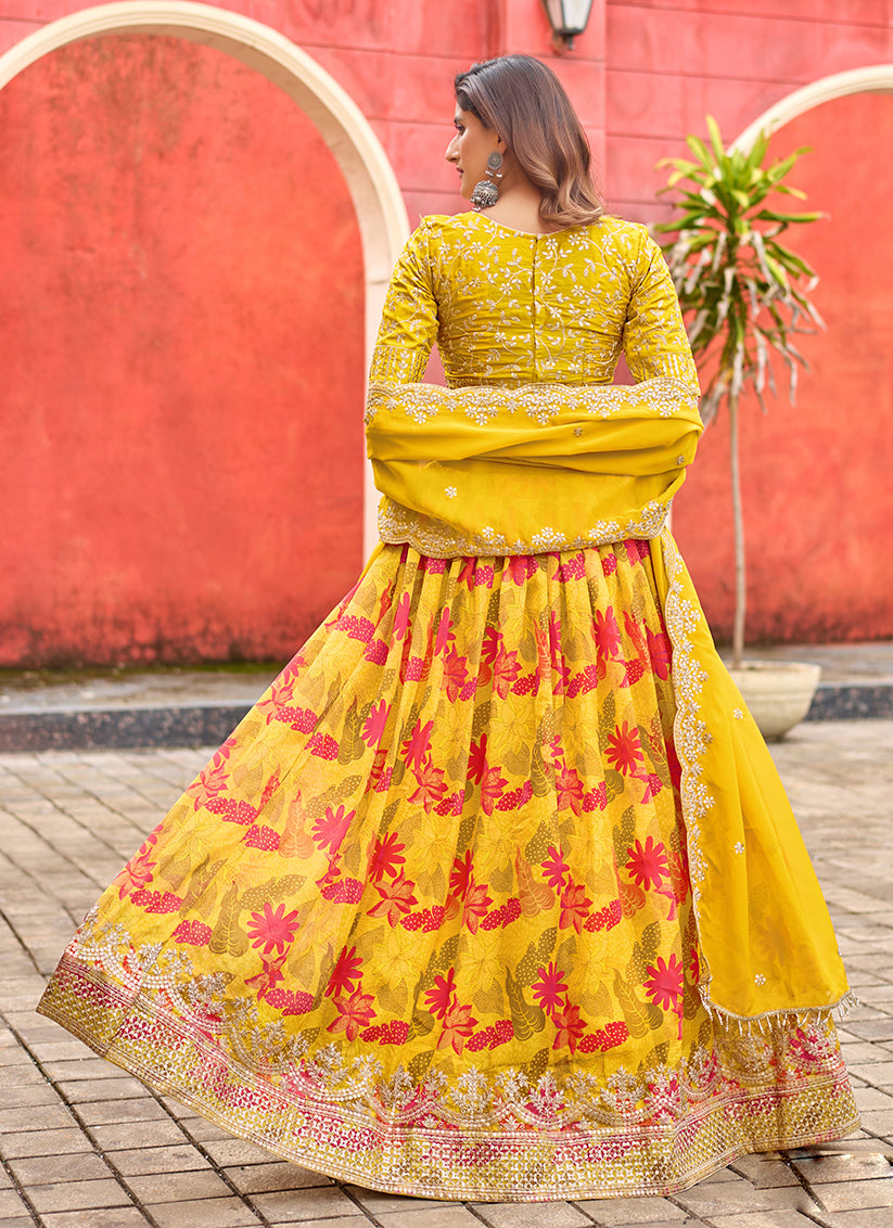 TDO263200-1Maize Yellow Tabby Silk Embroidered Lehenga Choli set