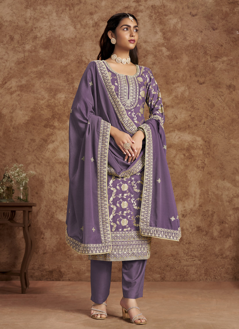 TDO254801-1Mauve Dola Jacquard & Embroidered Plus Size Suit