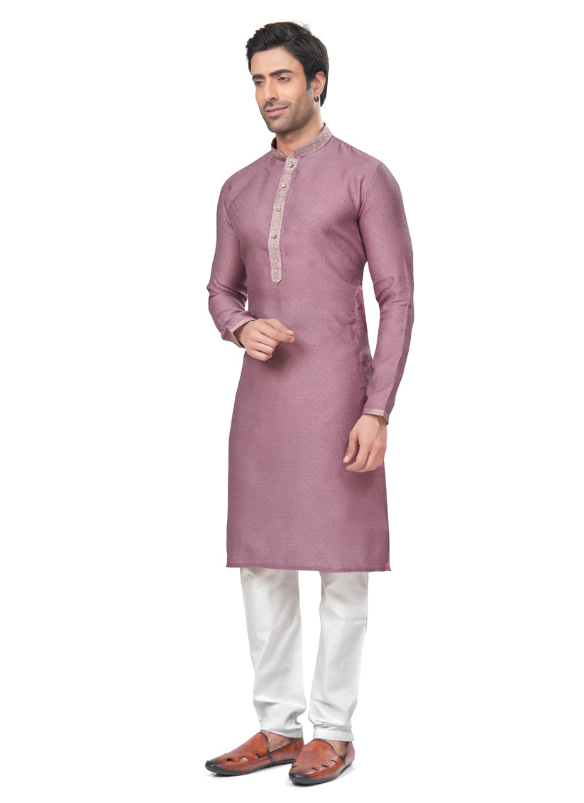 Mauve Jacquard Mens Kurta Pajama Set