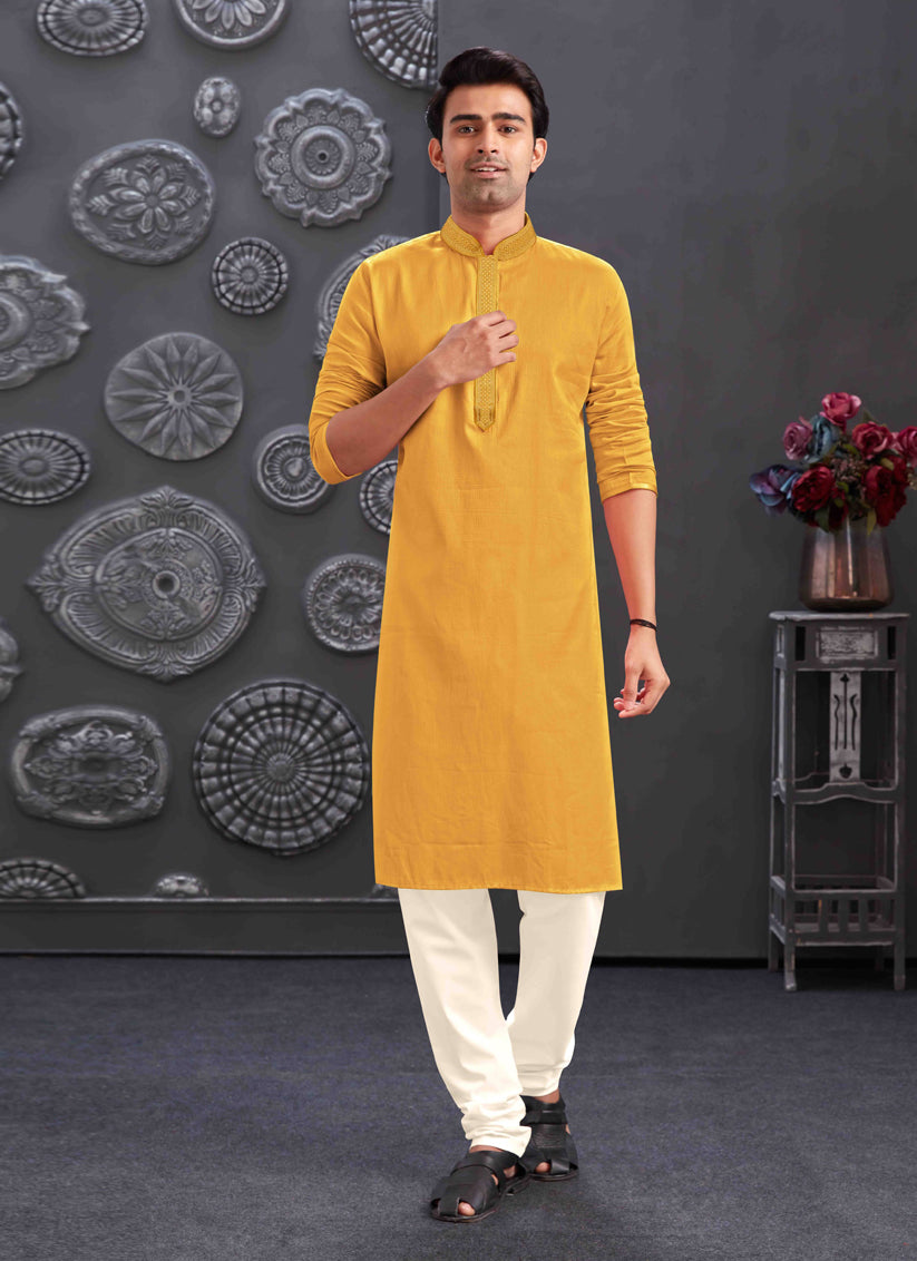 TDO250405-1Mustard Yellow Blend Silk Mens Kurta Pajama Set
