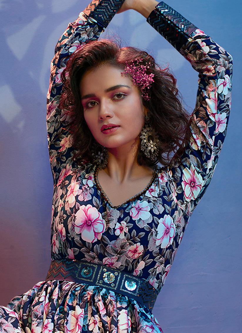 Fabric: Gown - Crepe (Can-Can not included) Inner - Silk Crepe Belt - Fancy sequins belt