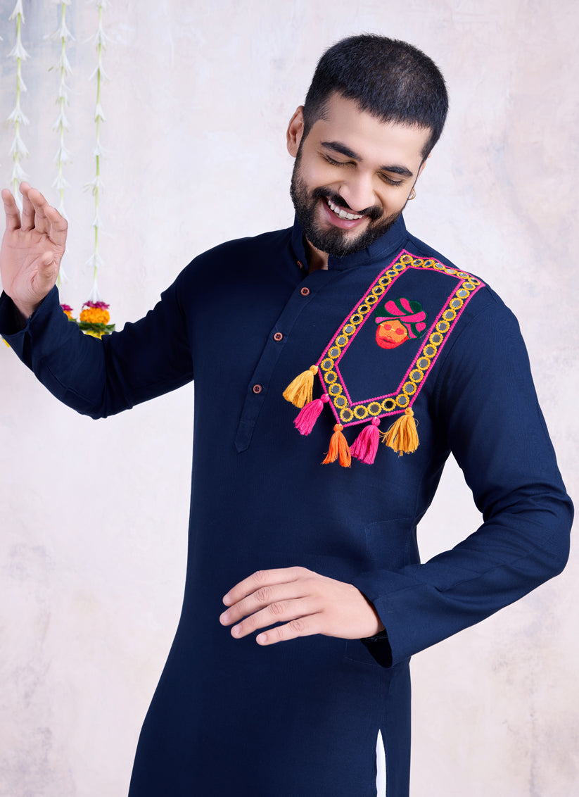 Navy Blue Rayon Gamthi Work Navratri Special Kurta