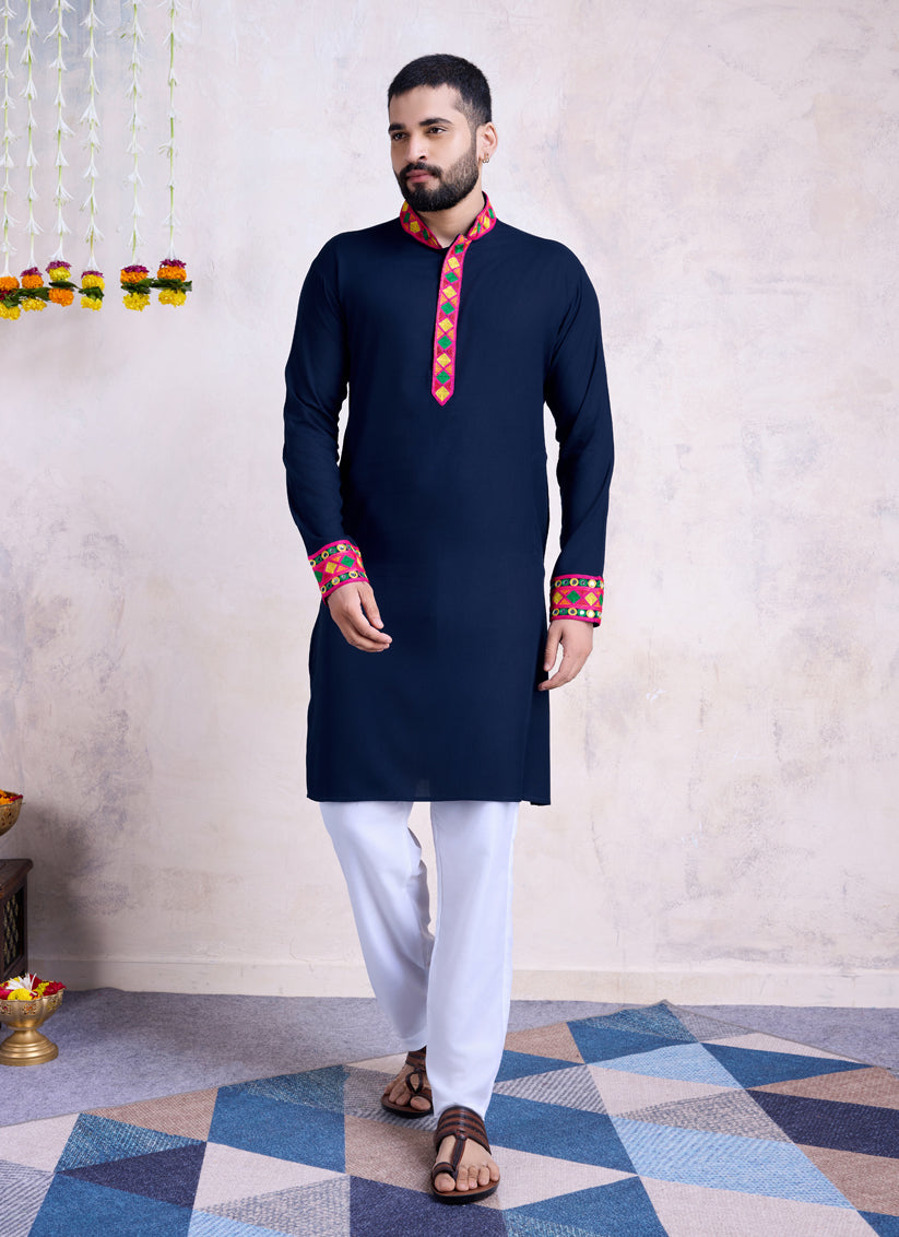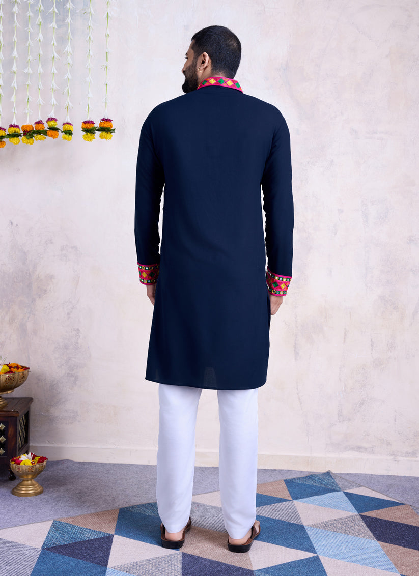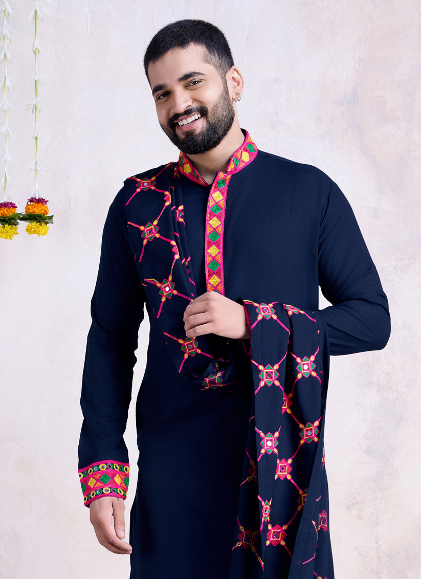 Navy Blue Rayon Gamthi Work Navratri Special Kurta with Dupatta