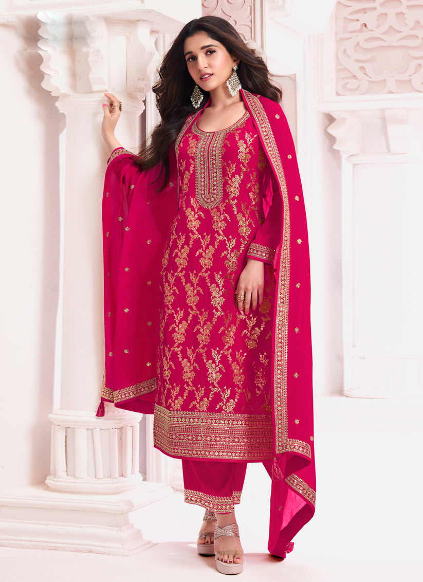 TDO240900-1Nidhi Shah Rani Pink Chinnon Embroidered Pant Kameez