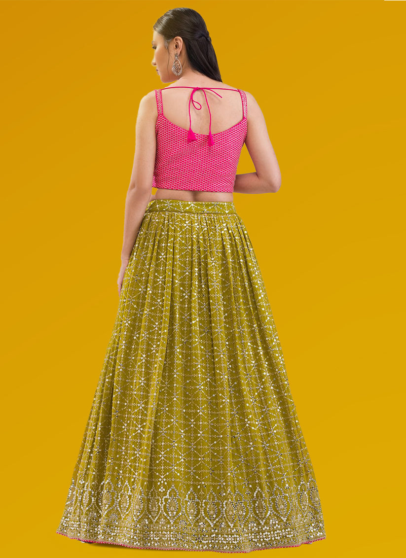 Olive Green Heavy Designer Georgette Lehenga Choli