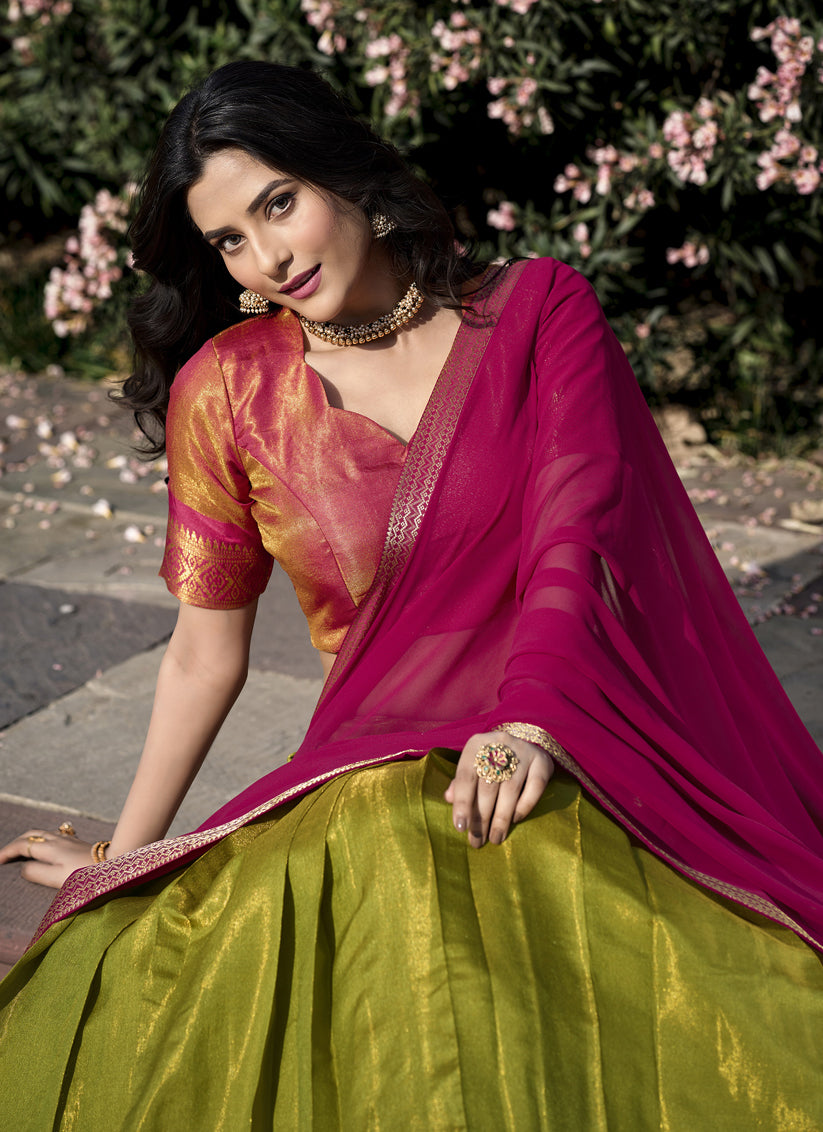 Parrot Green Zari Woven Kanchipuram Silk Lehenga Choli